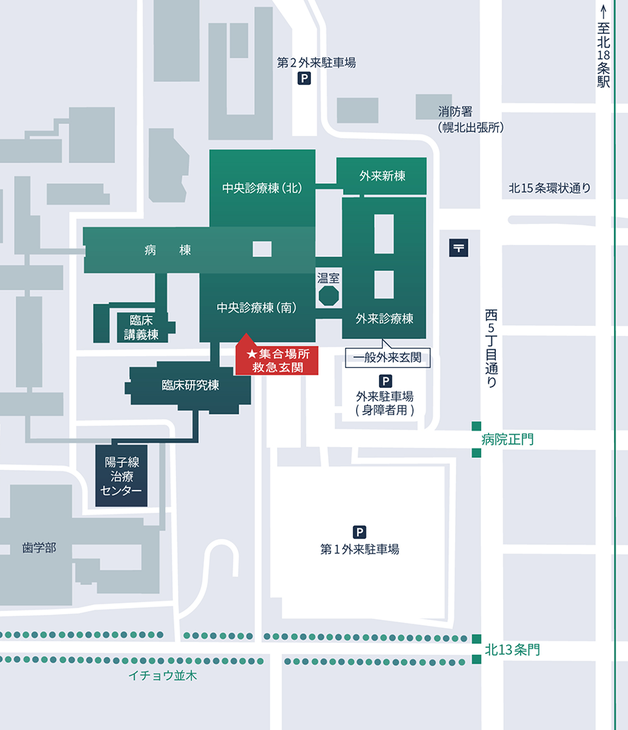 北海道大学病院 (*JR札幌駅北口から徒歩15分)